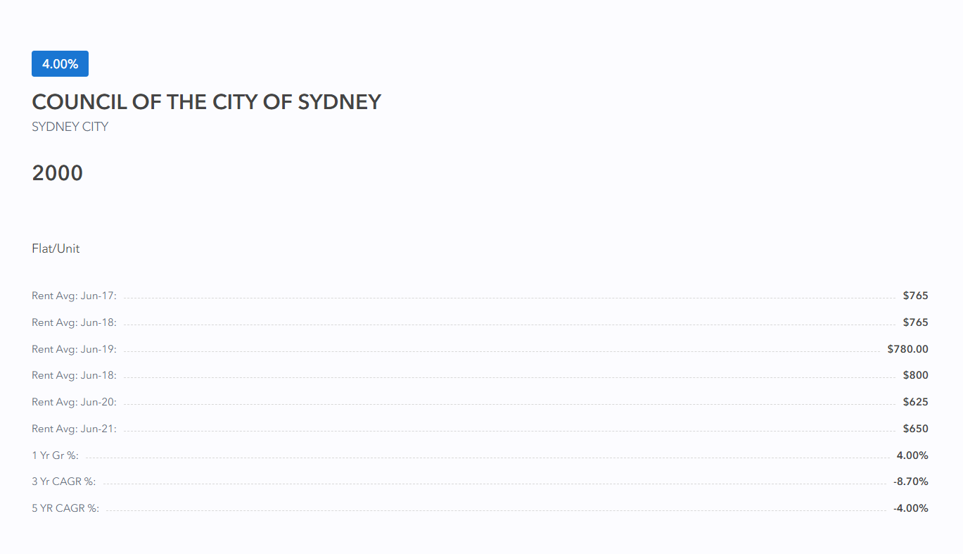 Not only does the website provide average rents in the past 5 years, but also what is the growth % rates over 1,3 or 5 years.